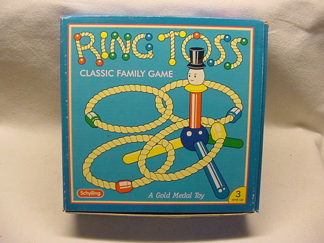 Title (ebay affiliate link): SCHYLLING CLASSIC FAMILY GAME RING TOSS GOLD MEDAL TOY COMPLETE NEW IN BOX ROPE