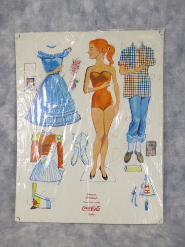 Title (ebay affiliate link): Vintage Season''s Greeting''s Coca-Cola Bottler Paper Doll Cut-Out with 3 Outfits