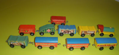 Vintage Wooden Toy Train Engine 10 Cars Circus Wood