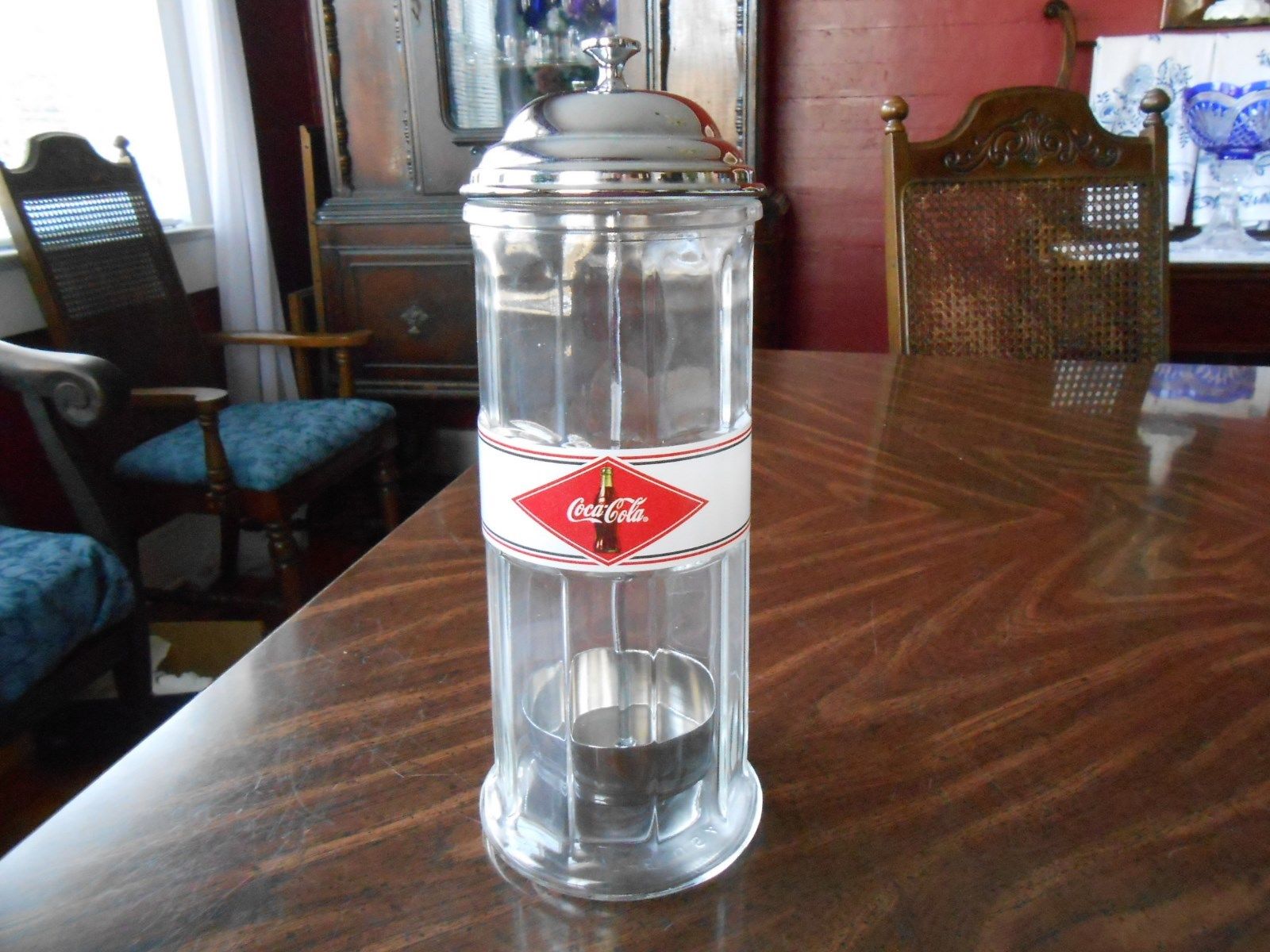 Title (ebay affiliate link): Vintage Coca-Cola Clear Glass & Chrome Straw Dispenser Jar (No Rust)