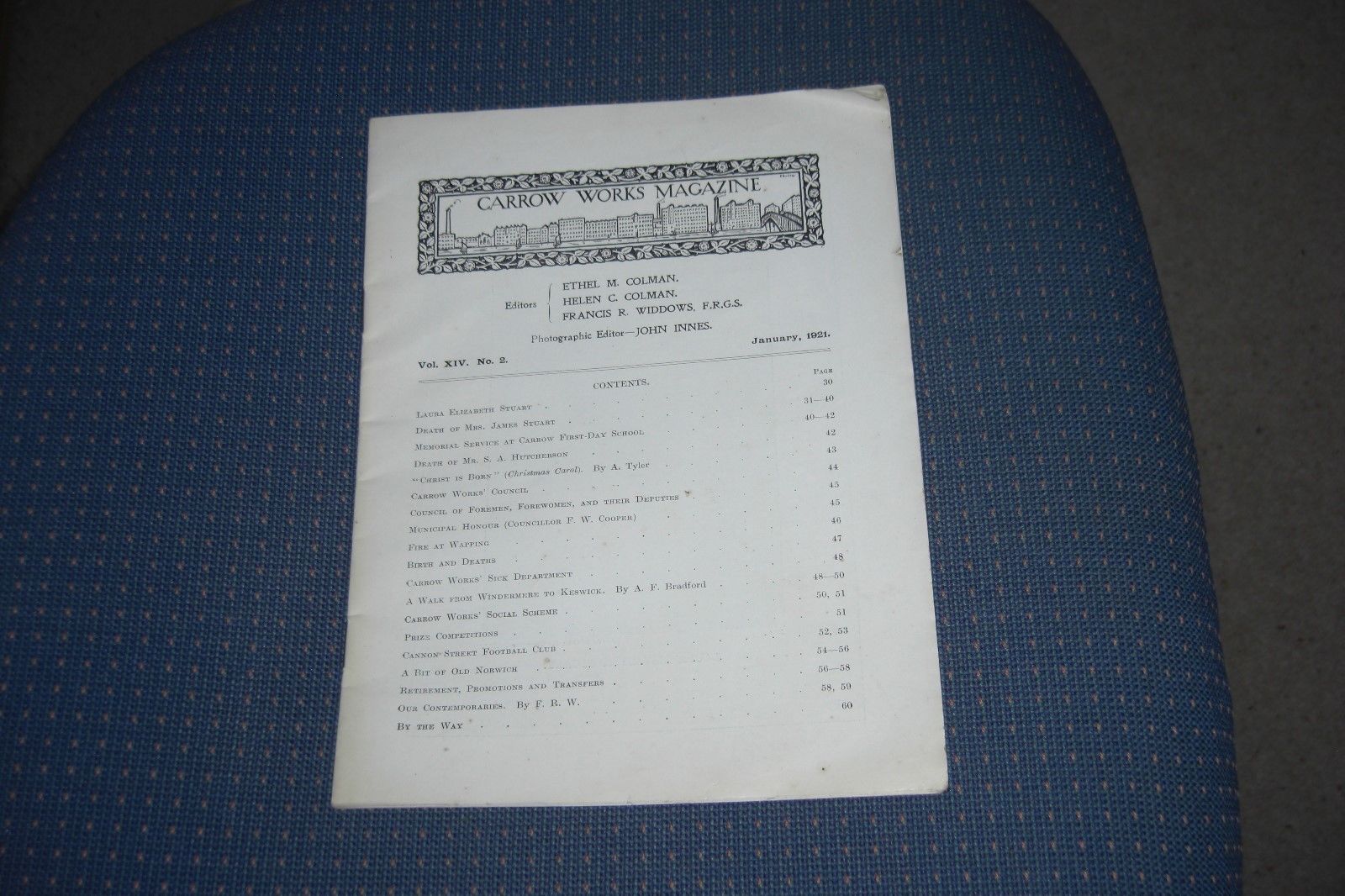 VINTAGE COLMAN (MUSTARD) CARROW WORKS EMPLOYEE MAGAZINE JAN 1921 VOL XIV No 2