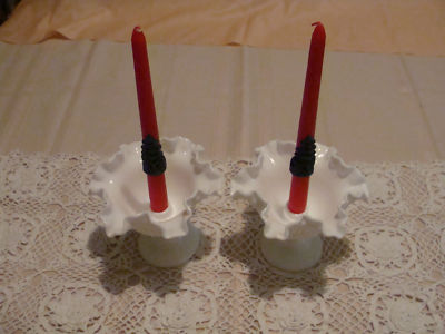 2 VINTAGE FENTON HOBNAIL MILK GLASS CANDLE HOLDERS
