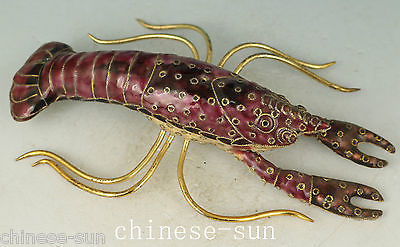 Asian Chinese Old Cloisonne Handmade Carving Lobster Collect Statue Figure