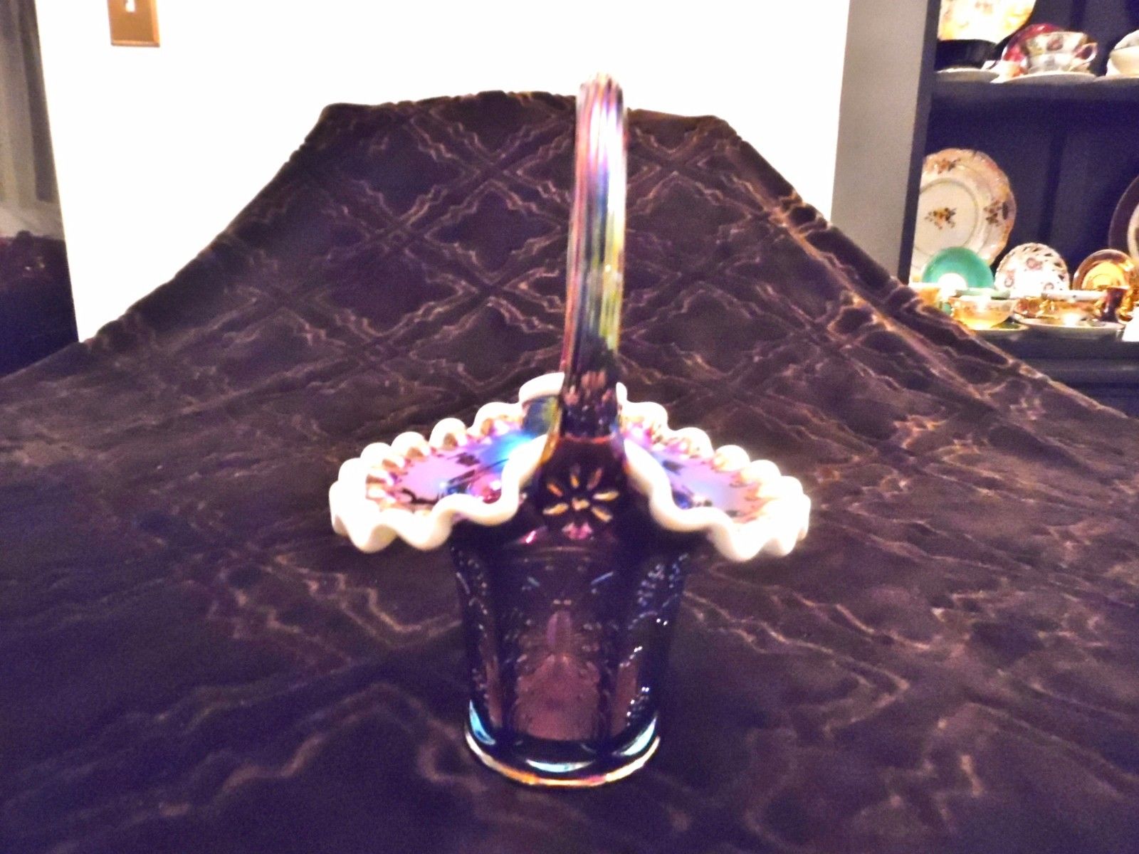 Title (ebay affiliate link): Fenton Carnival Butterfly & Berry Basket Milk Glass Edge Mint! QVC 1994