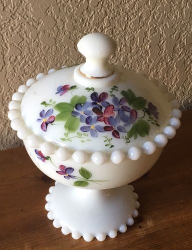 Title (ebay affiliate link): LG BEADED EDGE MILK GLASS WESTMORELAND? IMPERIAL CANDLEWICK? COMPOTE HANDPAINTED
