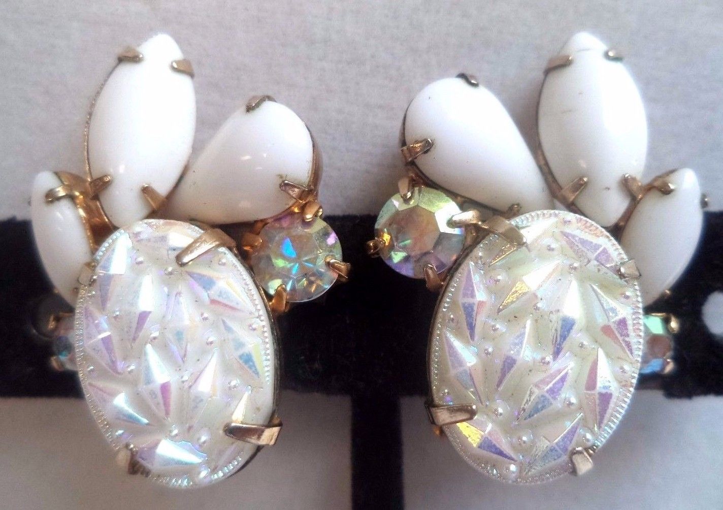 Title (ebay affiliate link): *RARE* VINTAGE ESTATE SIGNED WEISS IRIDESCENT MILK GLASS 1 1/4" EARRINGS! G5563