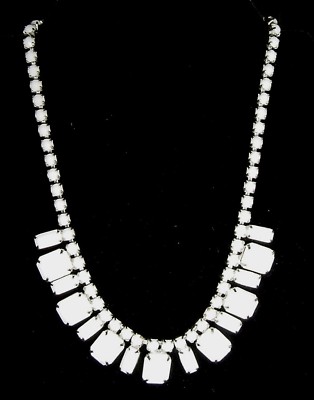FABULOUS RARE VINTAGE WHITE MILK GLASS "WEISS" NECKLACE