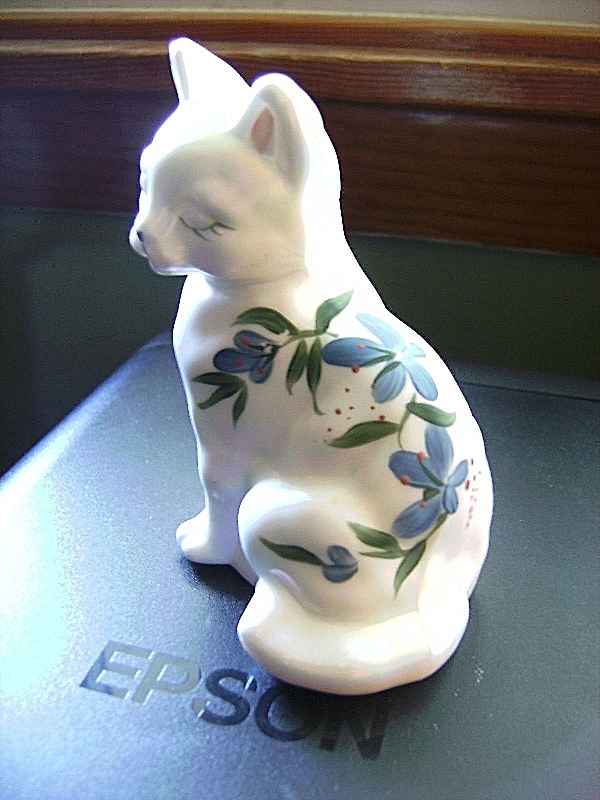 Title (ebay affiliate link): FENTON - MILK GLASS/IRIDIZED SHINY SITTING CAT - J. CUNNINGHAM - NO RESERVE!!
