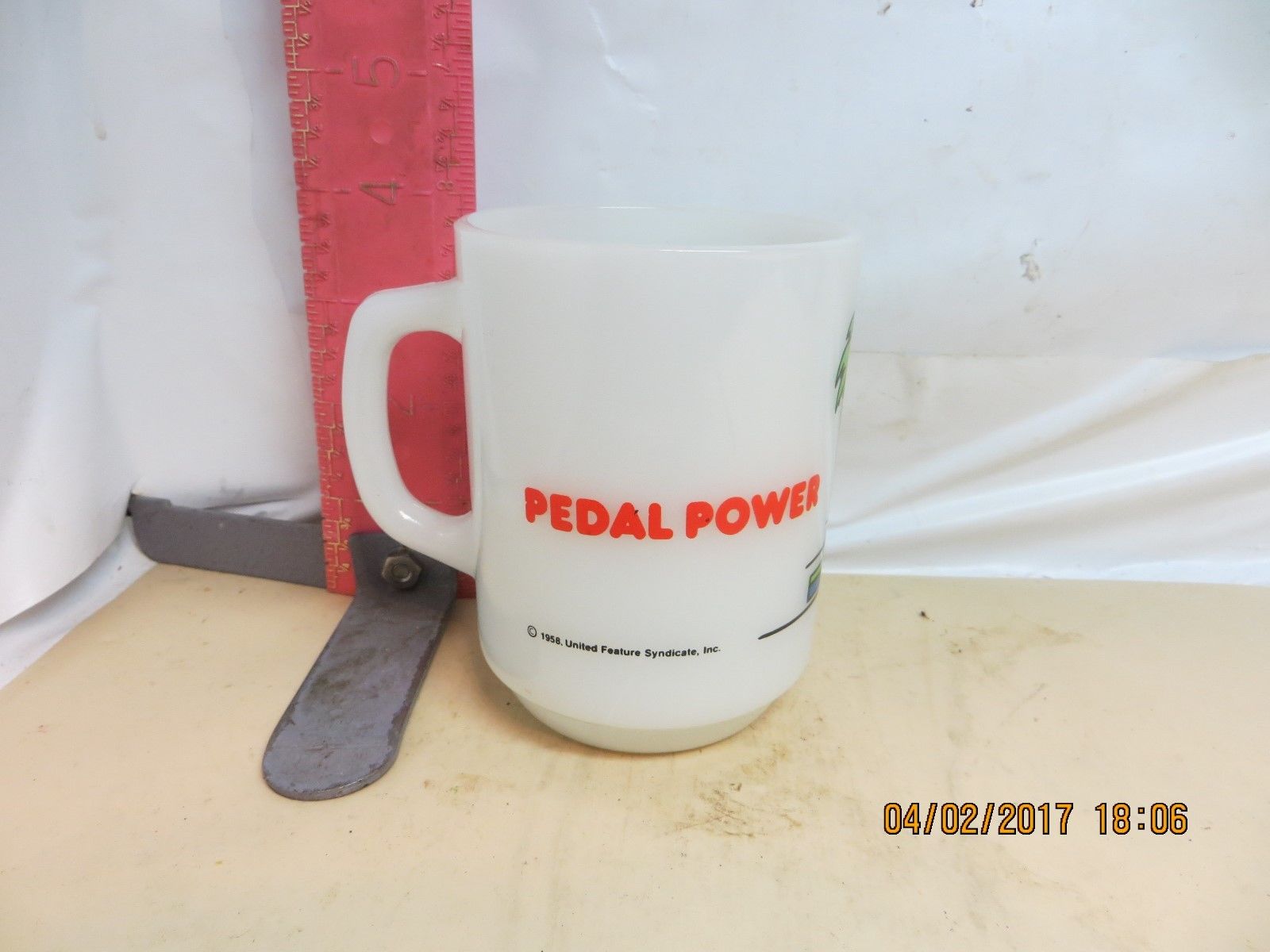 Title (ebay affiliate link): SNOOPY MILK GLASS MUG - ANCHOR HOCKING OVEN PROOF GLASS - PEDAL POWER