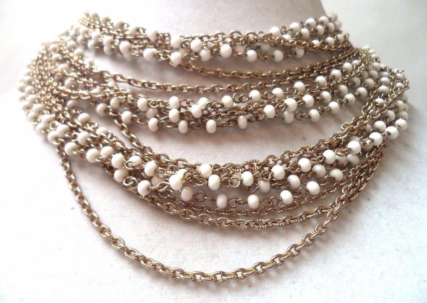 Title (ebay affiliate link): VINTAGE ESTATE GOLD TONE MULTI STRAND MILK GLASS 16 1/2" NECKLACE!!! 4321K