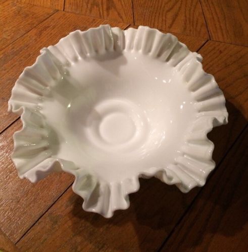 Vintage White Milk Glass Hobnail Ruffled Centerpiece Bowl