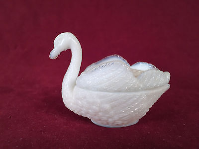 German Von Streit Milk Glass 2 1/2 Inch Swan Covered Dish Could be Covered Salt