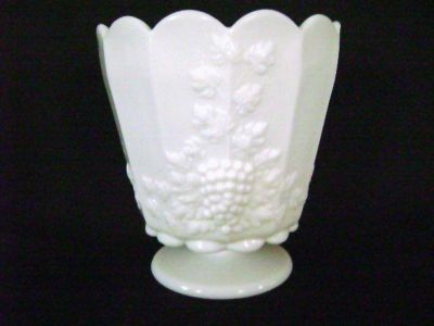 WESTMORELAND MILK GLASS PANEL GRAPE FTD JARDINIERE