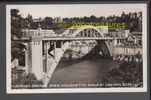Title (ebay affiliate link): Rppc Arch Bridge Willamette River Oregon City Or Downtown Old Cars Coca-Cola Mor