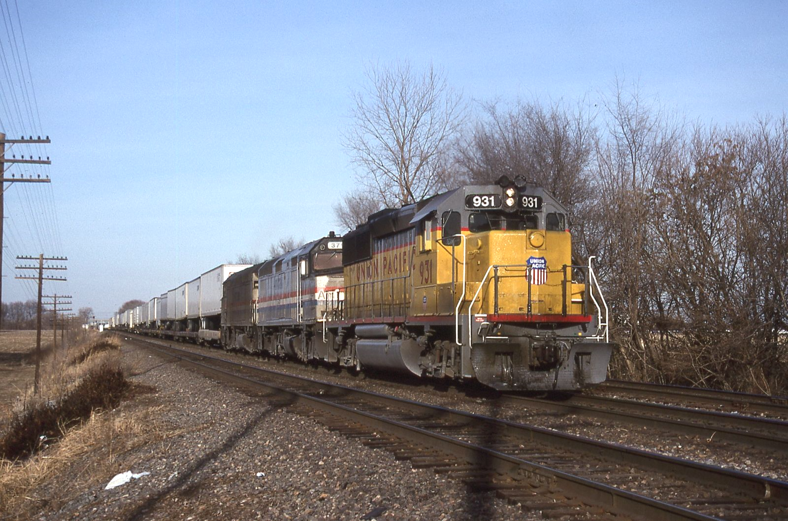 UP GP50 # 931 with leased Amtrak F40PH''s @ Cahokia, IL 2/02/1996