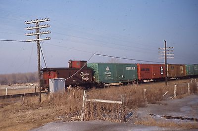 ORIGINAL SLIDE CANADIAN PACIFIC RWYS CABOOSE # 436255 ACTION ZORRO, ONT 1969