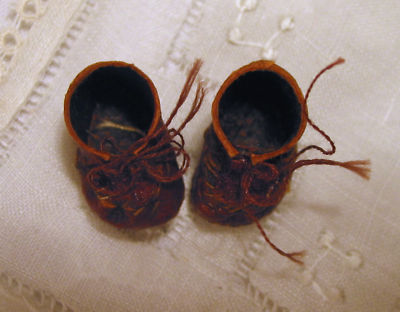 1920's Tiny Antique Leather Lace-up Bisque Doll Shoes
