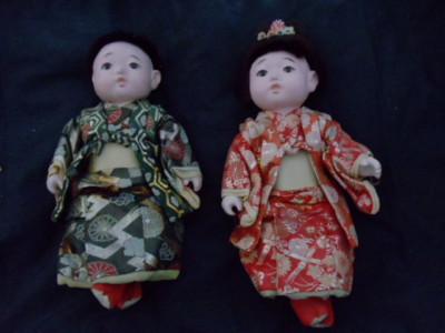 Title (ebay affiliate link): ADORABLE ANTIQUE JAPANESE DOLLS BOY&GIRL W/SILK KIMONOS