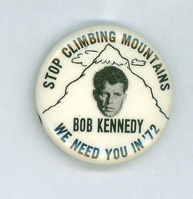 Title (ebay affiliate link): Vintage 1968 Robert Kennedy Stop Climbing Mountains Political Pinback Button