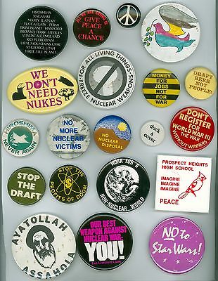 Title (ebay affiliate link): 20 Vintage 70s-80s Peace & Anti-Nuclear War Cause Pinback Buttons No Star Wars