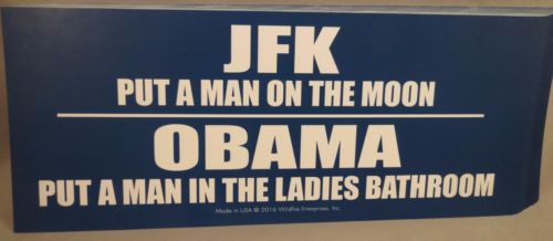 Title (ebay affiliate link): LOT OF 20 JFK PUT MAN ON MOON OBAMA PUT MAN IN LADIES BATHROOM STICKER TRUMP $