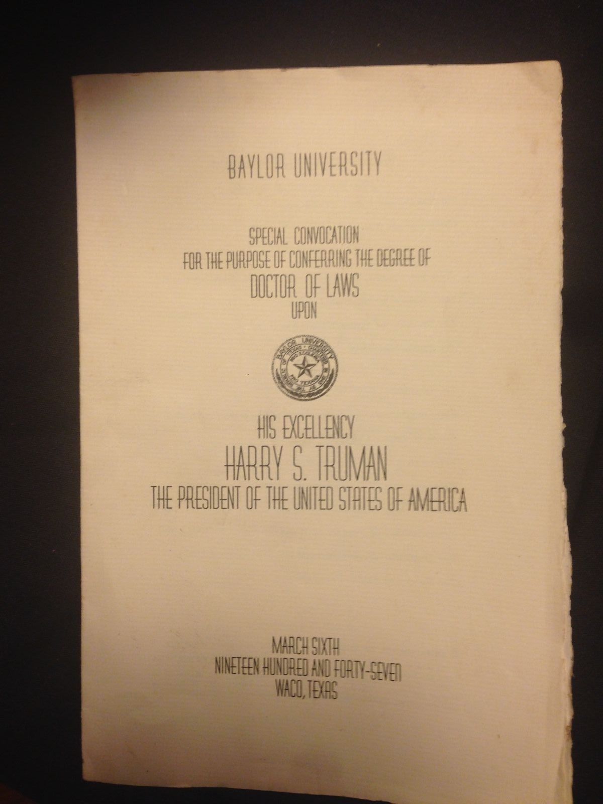 Title (ebay affiliate link): Harry S. Truman Program Baylor University 3/6/1947 Conferring Doctor of Laws