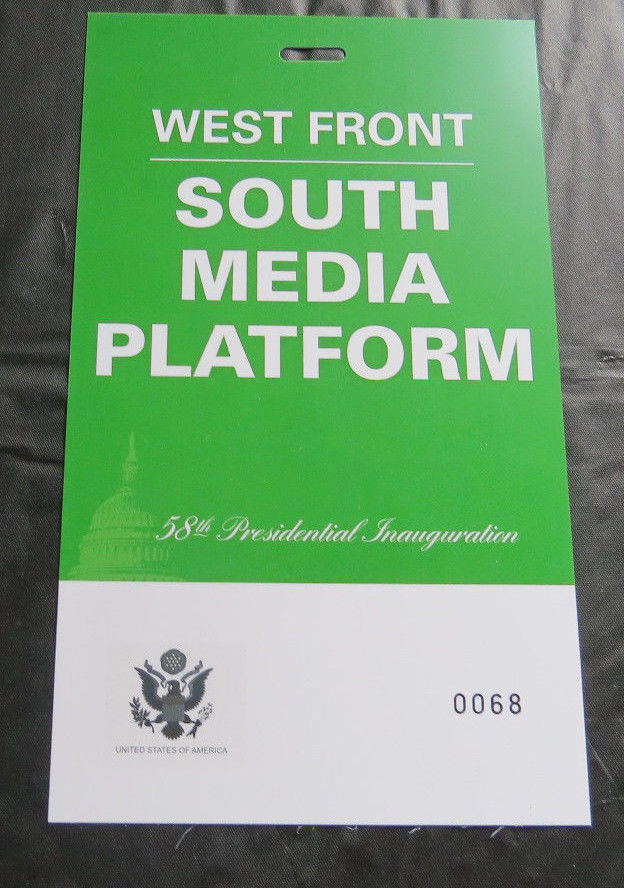 Donald Trump 58th Inauguration GREEN MEDIA PLATFORM CREDENTIAL TICKET PASS