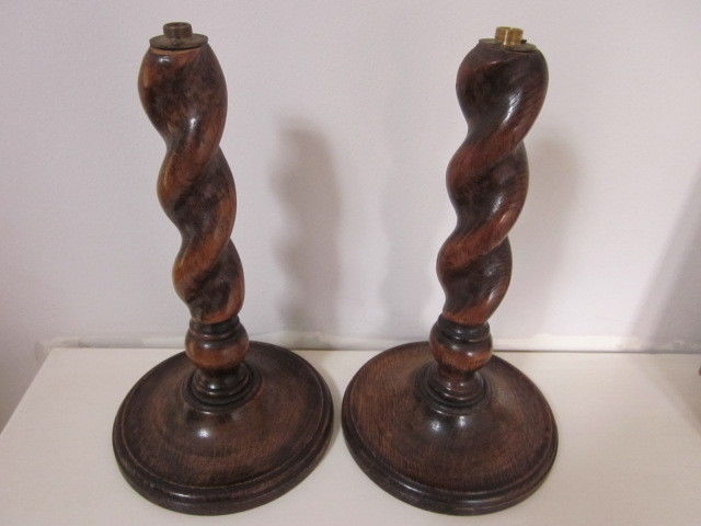 Title (ebay affiliate link): PAIR OF ANTIQUE MAHOGANY BARLEY TWIST TABLE LAMP STANDS.