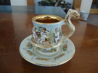 FINE VINTAGE NAPLES CAPODIMONTE ITALY PORCELAIN CUP AND SAUCER. #1a.