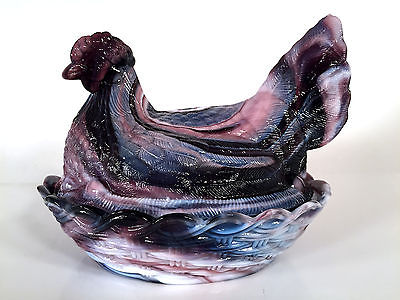 Title (ebay affiliate link): LG Wright Purple Marble Slag Milk Glass 7 Inch Chicken Hen On Nest Covered Dish