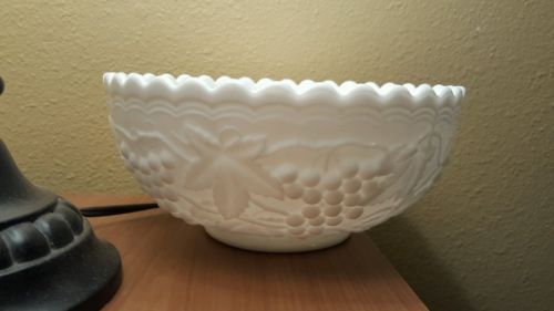 Title (ebay affiliate link): IMPERIAL VINTAGE MILK GLASS Grape Pattern Large MILK GLASS Bowl