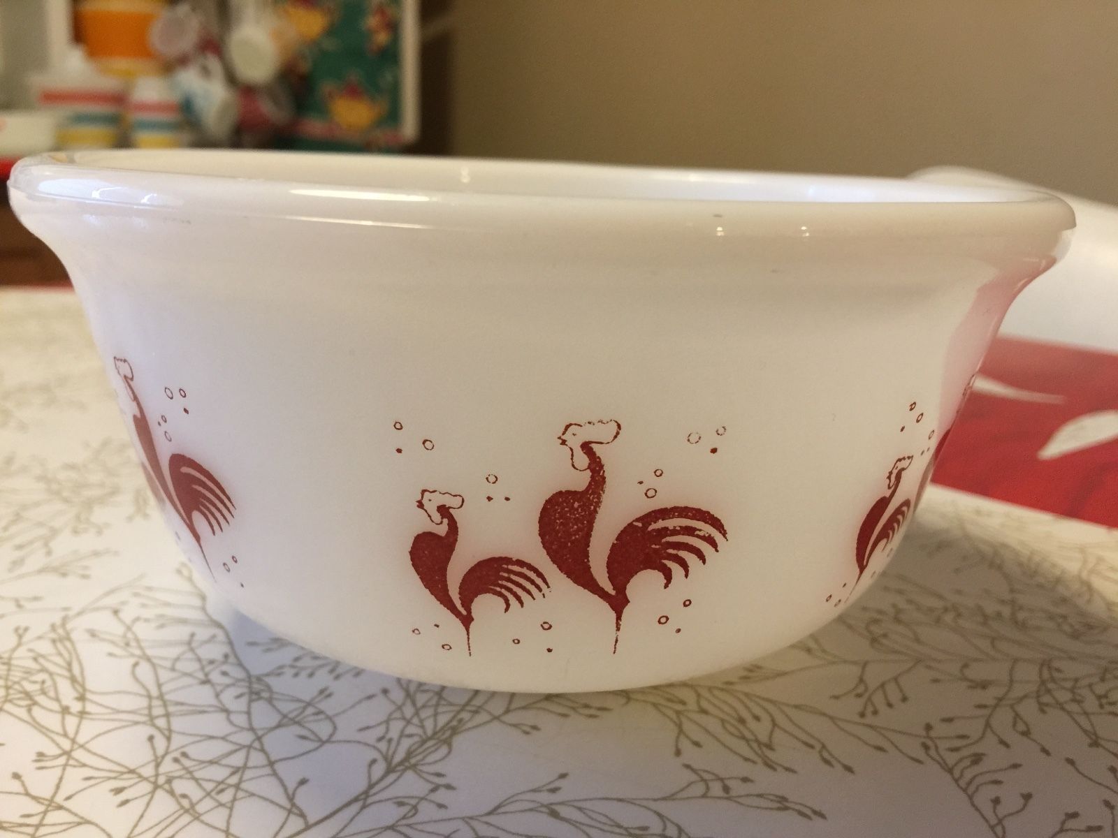 Hazel Atlas vintage milk glass Red Rooster bowl