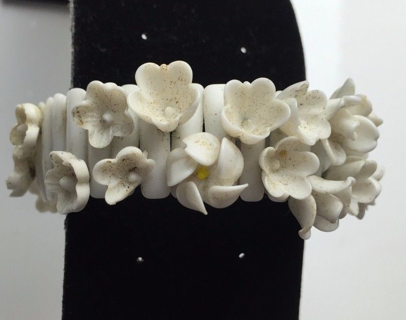 Title (ebay affiliate link): Vintage Bracelet Unsigned Miriam Haskell White Milk Glass Flower Bead Bangle