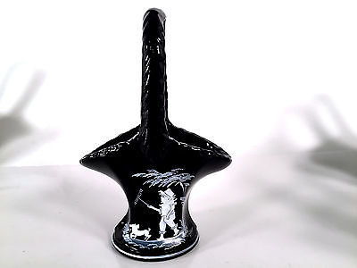 Rosso Westmoreland Mary Gregory Boy With Dog and Rake Black Milk Glass Basket