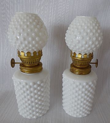 Set of 2 Vintage Miniature Hurricane Oil Lamp white milk Glass Hobnail Japan