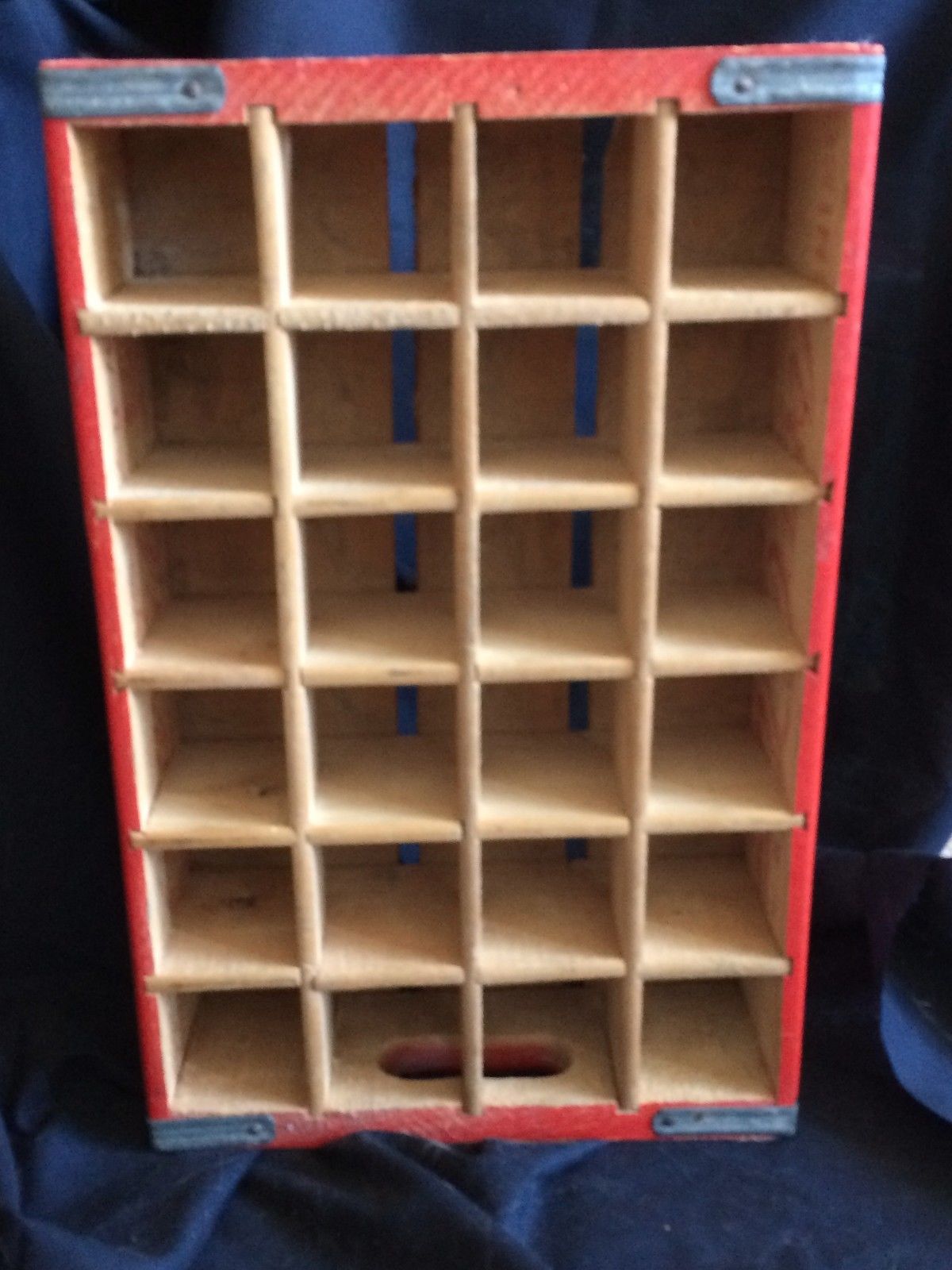 Title (ebay affiliate link): ANTIQUE VINTAGE Wooden RED Coca Cola Coke Bottle Crate Carrier Case 24 Slot Box