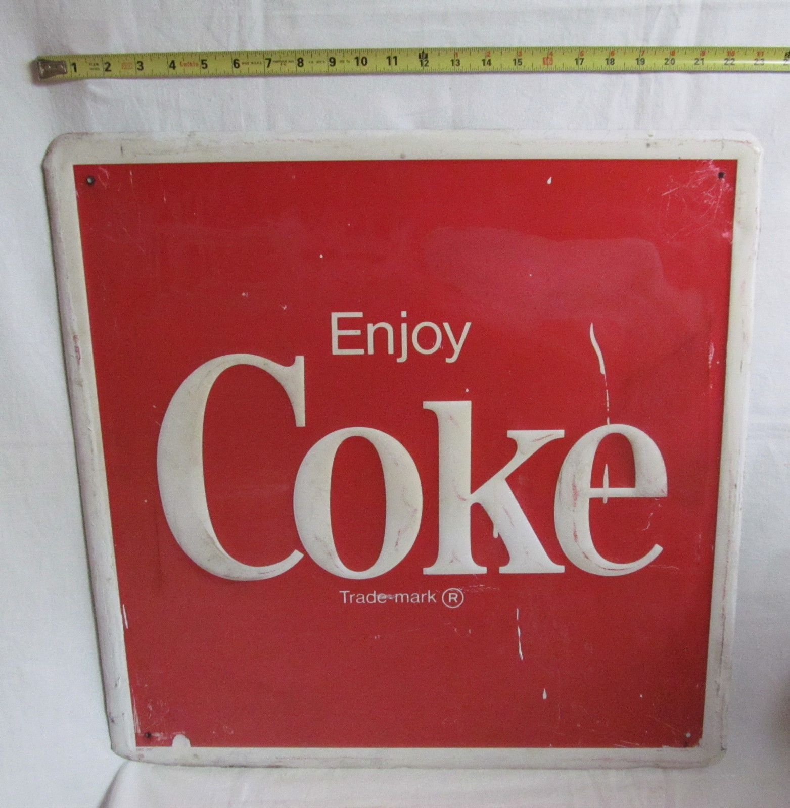 Title (ebay affiliate link): Old Coca Cola Enjoy Coke Advertising Tin Metal Sign 24x24 Scioto Signs Ohio 1958
