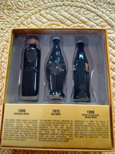 Evolution of the coca cola contour bottle box set 3 bottles set full