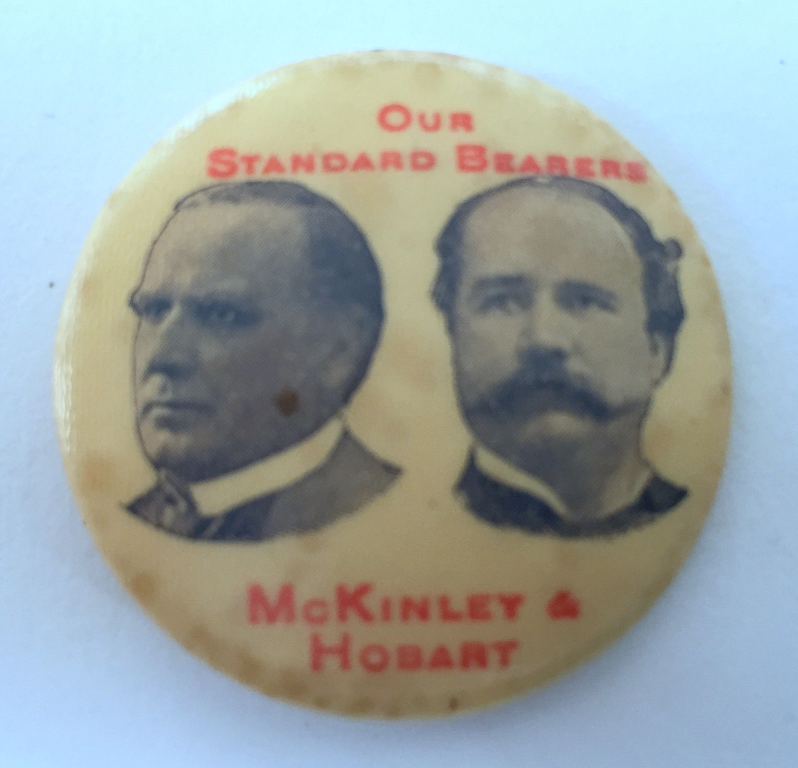 Title (ebay affiliate link): PRESIDENT McKINLEY HOBART STANDARD BEARERS JUGATE PHOTO CELLO PINBACK BUTTON ''96