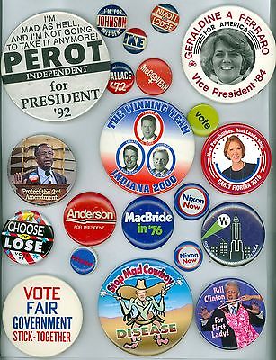21 Vintage Presidential Political Campaign Pinback Buttons - Perot Johnson Nixon