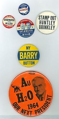 6 Vintage 1964 President Barry Goldwater Political Campaign Pinback Buttons