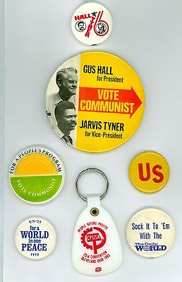 Title (ebay affiliate link): 6 Vintage 1970s Gus Hall Communist Party USA Political Pinback Buttons KeyTag