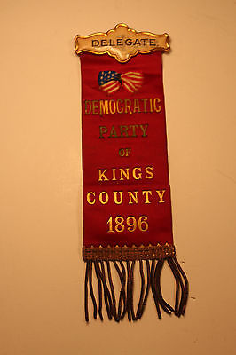 1896 Democratic Party Of Kings County Delegate Flag Ribbon Democrat V Nice Shape