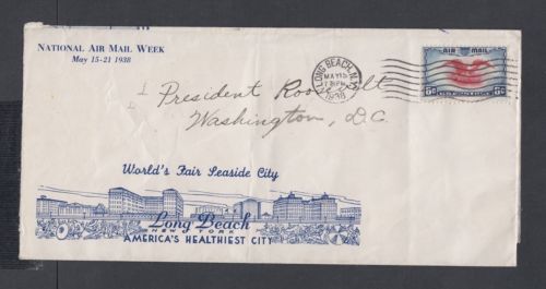 Title (ebay affiliate link): USA 1938 NATIONAL AIR MAIL WEEK COVER LONG BEACH NEW YORK FDR COLLECTION