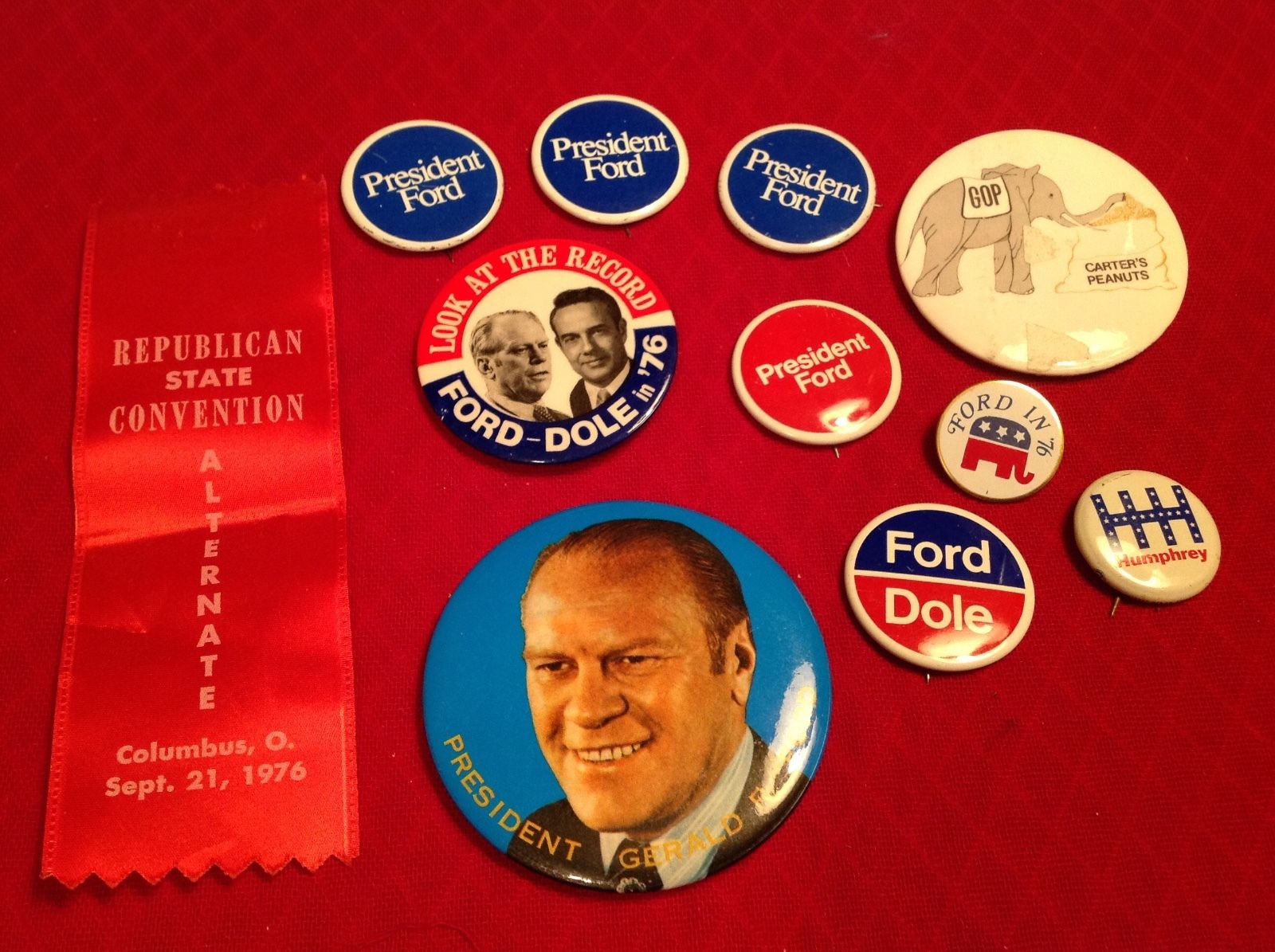 Ford for President Lot of 11 Vintage POLITICAL Pinback Buttons, Ribbon and Pin