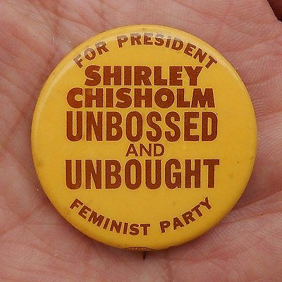 1972 Shirley Chisholm for President Button Feminist Party UNBOSSED and UNBOUGHT