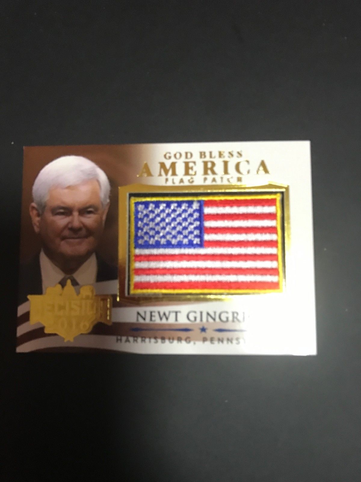 2016 LEAF DECISION 2 GOD BLESS AMERICA FLAG PATCH GOLD NEWT GINGRICH GBA34 RARE