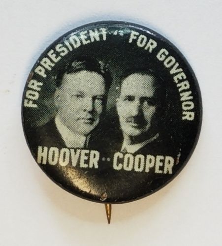 Title (ebay affiliate link): Herbert Hoover Cooper Ohio Governer Jugate Political Campaign Pinback Button
