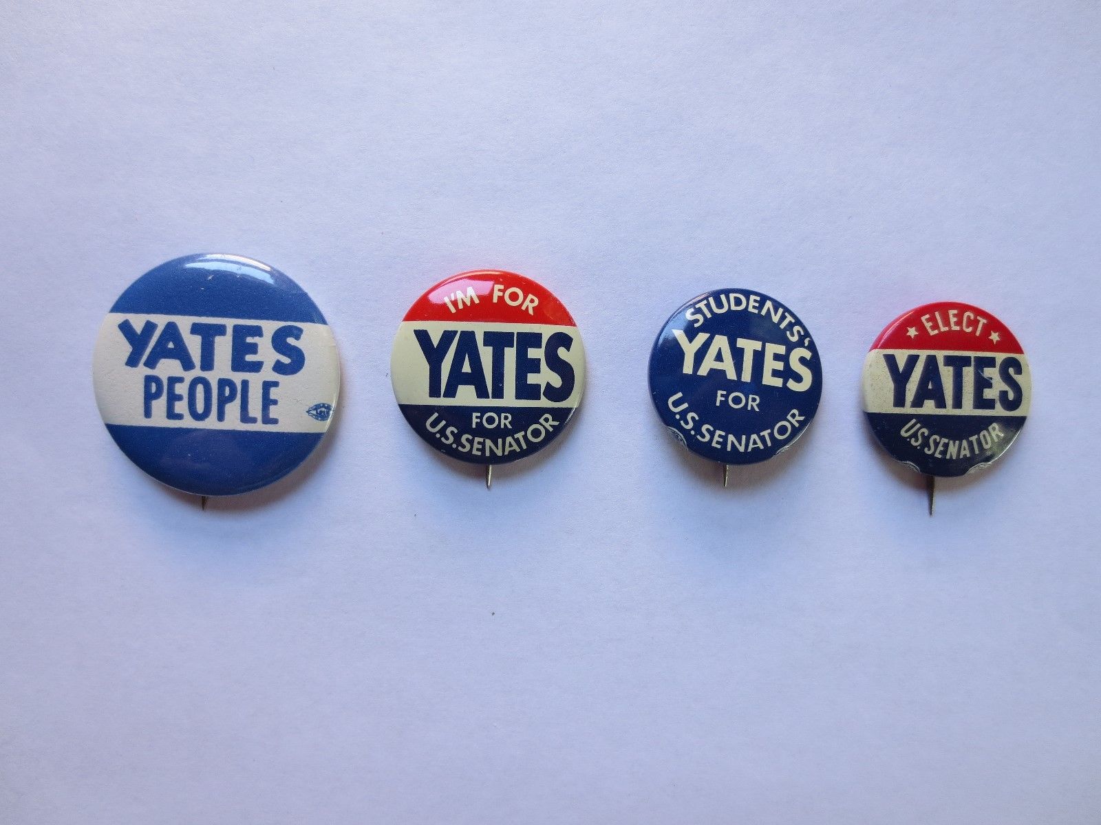 Title (ebay affiliate link): Collection of 4 Pinbacks for Sidney R. Yates for US Senate from Illinois