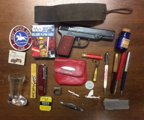 Title (ebay affiliate link): Junk Drawer Lot Coca Cola Coke Imperial Knife Quinine Bottle Parker Pen.Lighter+